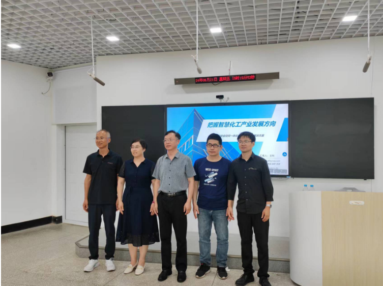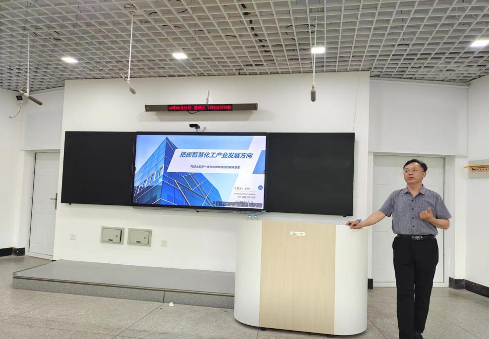 讲座伊始,边晶梅主任对王刚总经理的到来表示热烈欢迎。随后,王刚从新质生产力在化工行业的应用、数字孪生工程管理、应急指挥、北斗导航系统、毕业生进入企业怎样快速进步等五个方面为参会师生进行深入细致的讲解,并同部分教师进行了交流。最后,参会教师再次感谢王刚总经理的精彩分享,并一起拍照留念。