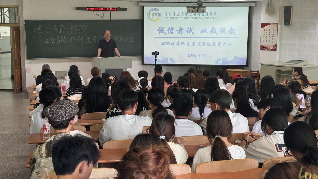 为进一步加强考风考纪教育,深入推进世俱杯官网学风建设工作,倡导“严肃考风考纪、弘扬优良学风、文明诚信应考”,增强同学们的诚信考试意识,保证考试的公正性,端正同学们的学习和考试态度。6月17日下午,“诚信考试,从我做起”2023级本科生考风考纪教育大会在通明楼232、213教室举行,大会由2023级辅导员王怀老师主持,世俱杯官方网站党委书记李丙文主讲,2023级全体学生参会。