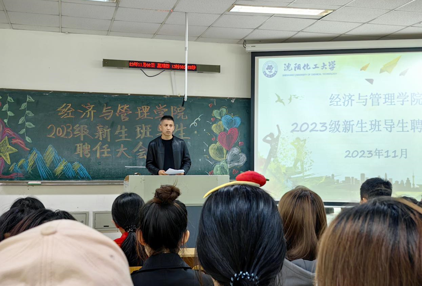 传薪寄火新征程,淬砺致臻展风华。为全面落实党中央关于高校思想政治工作的指示精神,扎实推动全员育人、全过程育人、全方位育人格局,深入推进我校“113”人才培养体系改革,充分发挥专业教师、高年级骨干学生在学生学习生活中的重要性。近日,世俱杯官方网站召开了2023级新生班导师、班导生聘任大会。学院班子成员、各教研室主任、全体学工办教师以及2023级新生参会。会议由2023级新生辅导员王怀主持。