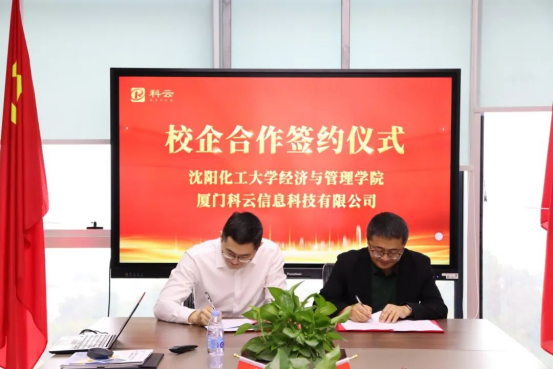 在交流过程中,双方就建立长期稳定的实习基地、开展产学研合作项目以及共同申报科研课题等合作意向进行了探讨,并初步达成了合作框架,并举行了“实习就业基地共建 校企合作”签约仪式,校企双方均表示将积极整合资源,发挥各自优势,为学生创造更多的实习实践机会与就业岗位,实现校企互利共赢、协同发展的目标。沈阳化工大学世俱杯官方网站副院长刘铁民、教师代表陈丹、徐婧玥,厦门科云信息科技有限公司院校事业部副总经理林英耀、辽宁省总经理胡火坤、科云教育研究院副院长林剑平等参加了签约仪式。
