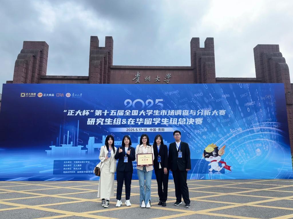 近日,第十五届全国大学生市场调查与分析大赛研究生组及在华留学生组总决赛于贵州圆满收官。作为国内市场营销与统计学领域的顶级赛事,本次大赛吸引了全国1184所高校、超34万名学子踊跃参与,其中研究生与留学生赛道汇聚589所高校同台竞技。在这场高规格赛事中,我校世俱杯官方网站参赛团队凭借深厚的专业功底与卓越的协作能力,一举揽获国家级二等奖1项、省级一等奖1项、二等奖2项、三等奖4项,展现出强劲的学科实力。
