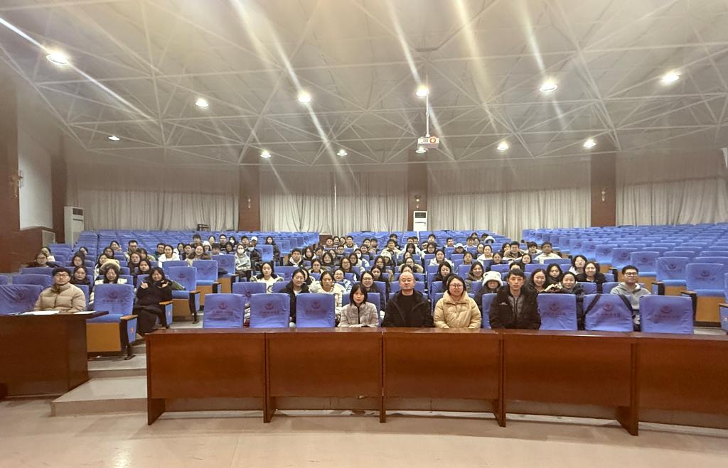 党委副书记关婷聚焦毕业生的职业发展与人生规划展开分享。她结合学院往届优秀毕业生的职业案例,从职场心态调适、角色转换适应、人际关系处理等方面为同学们提供实用建议,鼓励大家既要怀揣“直挂云帆济沧海”的豪情壮志,也要保持“脚踏实地行稳致远”的务实作风,在新的人生赛道上找准定位、深耕细作。