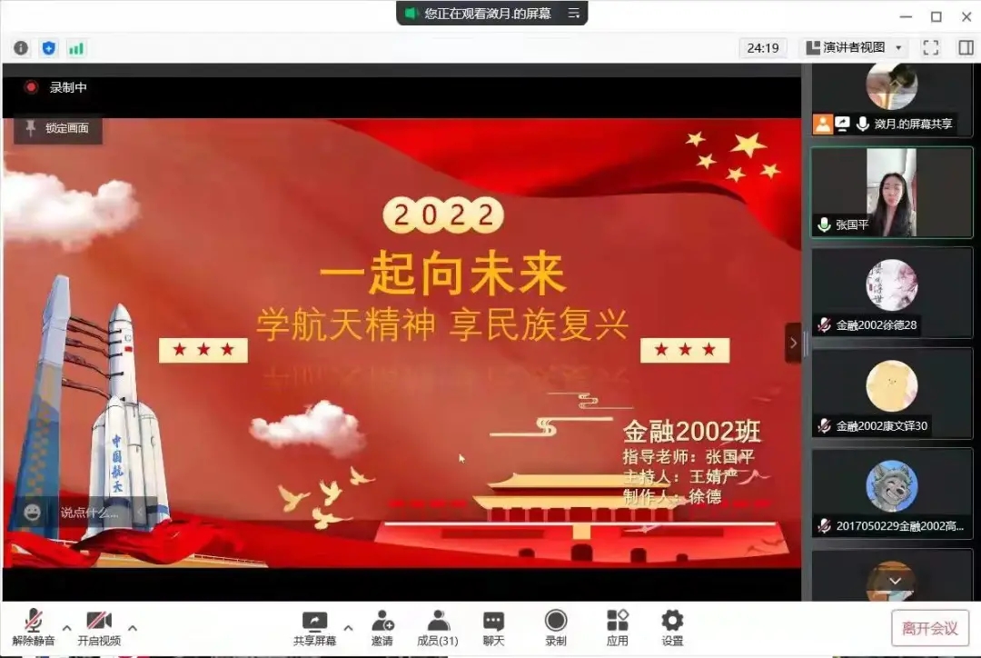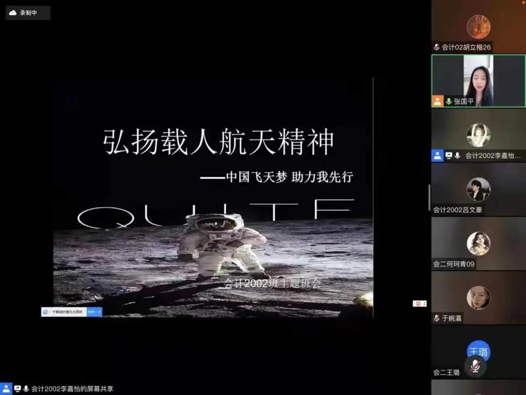 2020级以学习航天精神为主题,召开“你我共携手 共筑航天梦”主题班会,教育和引领学生要树立远大理想,激发学习动力,培养特别能吃苦、特别能战斗、特别能攻关、特别能奉献的精神。