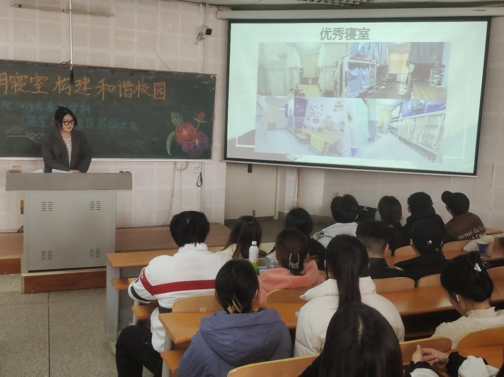 为营造良好的寝室文化氛围,提升学生的自我管理能力,推动世俱杯官网学风建设,世俱杯官方网站于3月19日中午,在瑞师楼124教室召开以“营造文明寝室 构建和谐校园”为主题的寝室文化建设启动仪式大会。世俱杯官方网站党委书记李丙文、学工办全体辅导员、本研学生寝室代表出席会议。大会由学院学生会生活部负责人安雨欣同学主持。