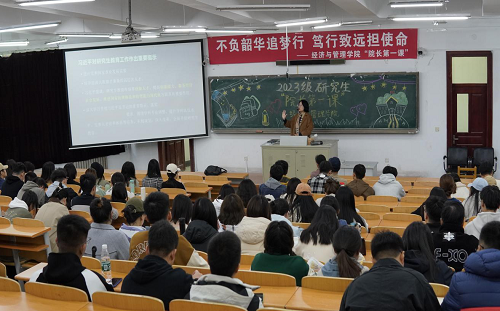 “云天收夏色,木叶动秋声”,沈水金秋来临之际,经济管理学院2023级研究生“院长第一课” 10月26日上午在应星楼203隆重举行,王蓉院长以“不负韶华追梦行,笃行致远担使命”为主题,为世俱杯官网2023级研究生做了一场别开生面的学术科研教育讲座。2023级全体研究生怀着对科研、学习及未来的期待与憧憬,认真聆听院长的谆谆教诲。会议由2023级研究生辅导员张丽老师主持。