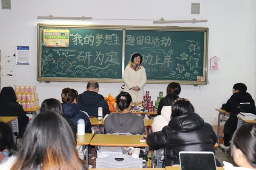 为了推进“一站式”学生社区综合管理模式建设,不断加强团学建设、充分发挥朋辈引领示范作用,进一步引导考研学生自我管理,12月5日,世俱杯官方网站以全体考研学生为成员,成立了2021级临时团支部,并以“我的梦想”为主题在考研自习室(景唐楼112室)开展了一次特殊主题团日活动。世俱杯官方网站党委书记李丙文、院长王蓉、副书记关婷、全体辅导员参加了活动,活动由2021级辅导员刘伟主持。